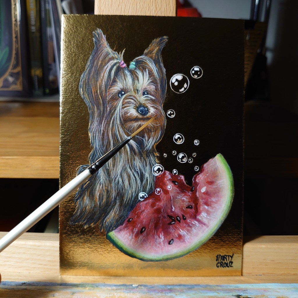 I can also make works on order (commission) if the subject and the style seem to me to be the ones I work on. As pets portraits, for exemple, I made a lot of commissions for animals lovers. But not only… In that case, contact me and we’ll discuss it.